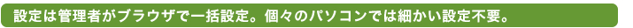 管理者が一括で設定を行う仕組みのため個々のパソコンにはサーバーのアドレス等を設定するのみで、細かい設定は不要です。
